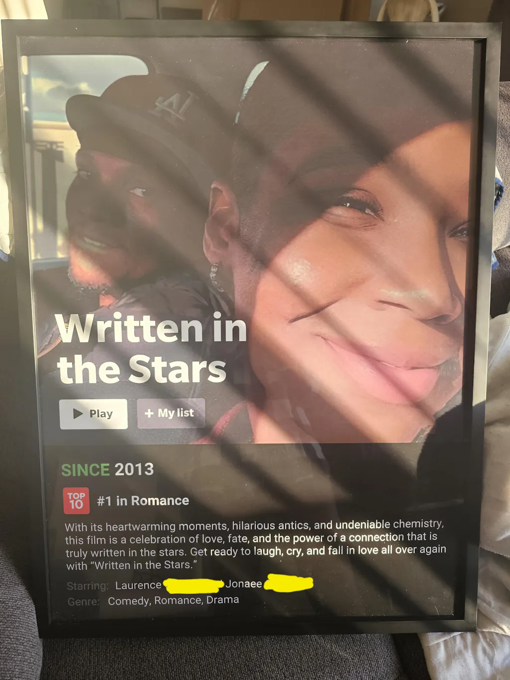This custom Netflix couples movie poster makes the perfect gift for your partner on your anniversary, their birthday, or anytime to spark romance. They will love how you personalized it with the story of your love to be on display for all to see. This is how you win gift giving.